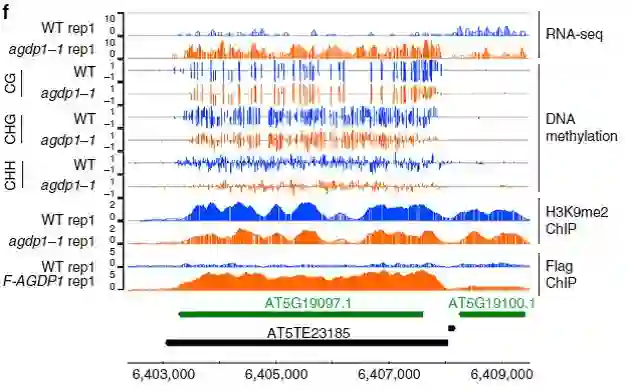 同时,功能实验结果显示,AGDP1蛋白是转录沉默、non-CG的DNA甲基以及某些基因座的H3K9me2所必需的;该蛋白的缺失影响了suvh4/5/6依赖的非CG甲基化以及整体的H3K9me2水平。该研究鉴定了一种新的H3K9me2结合蛋白AGDP1,并揭示了其对H3K9me2特异性识别的分子机制以及不同于以往的多肽结合形式,AGDP1在细胞核内主要存在于异染色质区域,并且与该区域的转录沉默以及non-CG的DNA甲基化紧密相连。因此,该研究在H3K9me2和异染色质DNA甲基化两个表观标记之间建立了全新的联系。