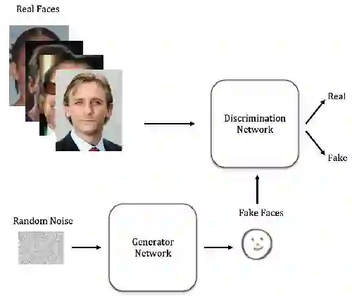 生成对抗网络由一个生成网络与一个判别网络组成。生成网络从潜在空间(latent space)中随机采样作为输入,其输出结果需要尽量模仿训练集中的真实样本。判别网络的输入则为真实样本或生成网络的输出,其目的是将生成网络的输出从真实样本中尽可能分辨出来。而生成网络则要尽可能地欺骗判别网络。两个网络相互对抗、不断调整参数,最终目的是使判别网络无法判断生成网络的输出结果是否真实。