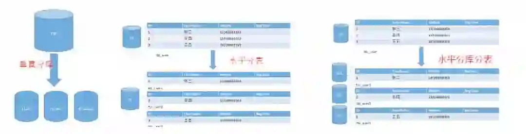 业务对应的库也会按照对应的业务进行拆分出用户库、商品库、交易库等。