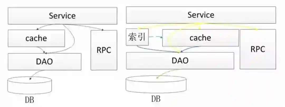 随着自身系统的业务发展,对性能要求高,而数据库一定程度上成为瓶颈,就会引入缓存及索引,分别解决key-value及复杂检索;索引加缓存现在已经成为解决高并发的基本方案,但在实施过程会有所区别;
