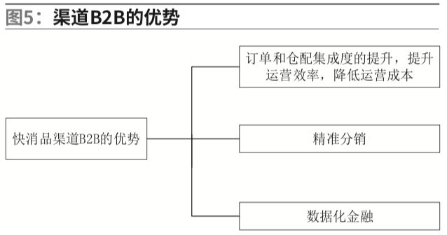 B2B行业通过专业平台软件的介入,以及互联网强大的信息整合功能,实现的是快消品品牌资源以及订单资源的集约,从而实现物流、信息流、资金流、商流的整合。B2B行业打破原有市场环境中“单兵作战”的思维模式,倡导品牌以及订单集成,通过提高订单密度以及客单价来降低物流成本,从而形成规模效益。
