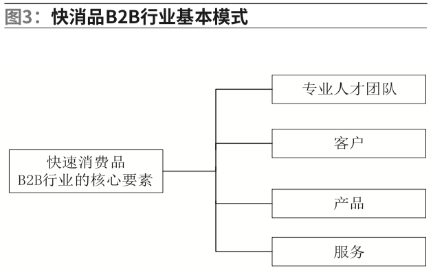(4)服务。B2B行业如果想在原有市场销售渠道占据一定份额,一定要做到服务领先,主要包括三类服务:一是针对一级品牌代理商的,规范化、透明化的仓储管理服务;二是即时、高效、准确的配送服务;三是具有消费者高满意度的零售终端服务。这三类服务也是决定B2B企业能否持续健康发展的关键因素。