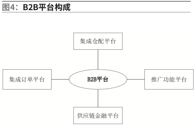 快消品B2B涉及到多个平台,包括集成订单平台、集成仓配平台、供应链金融平台以及推广功能平台,如图4。