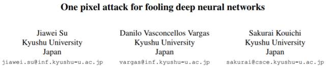 用于识别图片中物体的神经网络可以被精心设计的对抗样本欺骗,这个问题目前在计算机视觉领域备受关注。此前,生成对抗样本通常需要向原图片中加入一些特定的噪点(参见:经得住考验的「假图片」:用 TensorFlow 为神经网络生成对抗样本)。然而最近,日本九州大学的 Su Jiawei 等人发表的研究证明:修改图片中的一个像素也可以让深度神经网络完全判断错误。