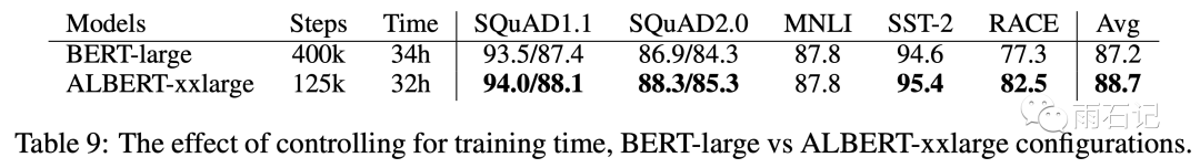 相同训练时间下,Bert-large和AlBert-xxlarge的效果