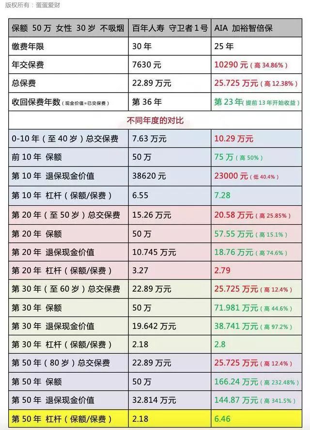 第50年,重疾和身故保额:香港比大陆的多232%