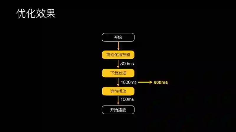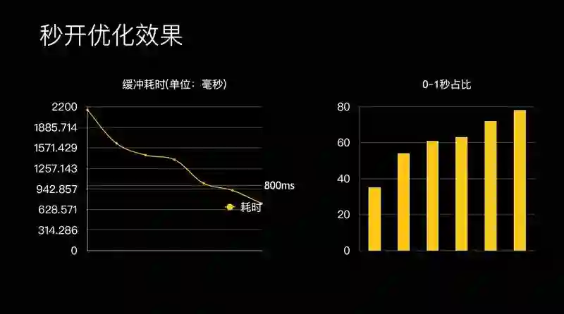 优化效果也是比较明显,经过刚才几个策略,一个是我们对头和播放器的处理,我们对防盗链的处理,还有对下载链路的处理和预加载,这样我们的耗时大幅度减少了,之前是 1.8 秒降到 0.6 秒左右。