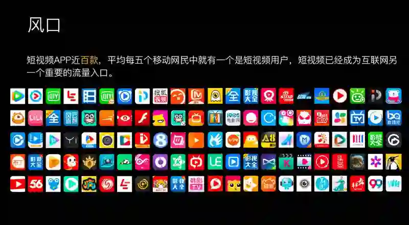 其实短视频已经不是一个新的概念,从 2006 年开始国内就有很多公司在做短视频。随着 Facebook 吹起短视频风,去年在短视频行业有近百款应用出现,中国网民里面每 5 个里面就有 1 个是短视频的用户,短视频成为互联网的流量入口。