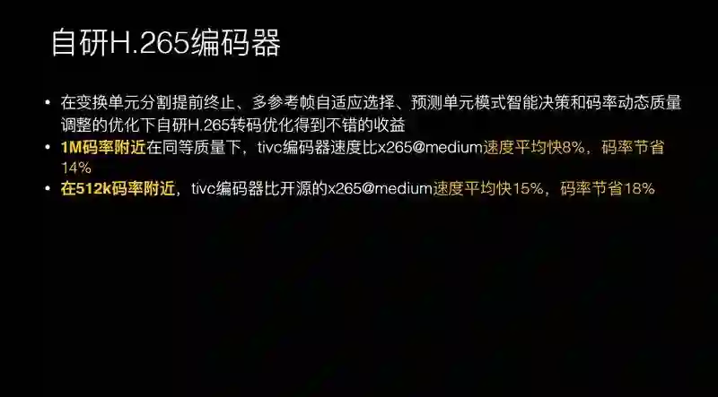 同样,在 H.265 编码器上做了一些优化,比如编码速度和码率的节省都会有提升。