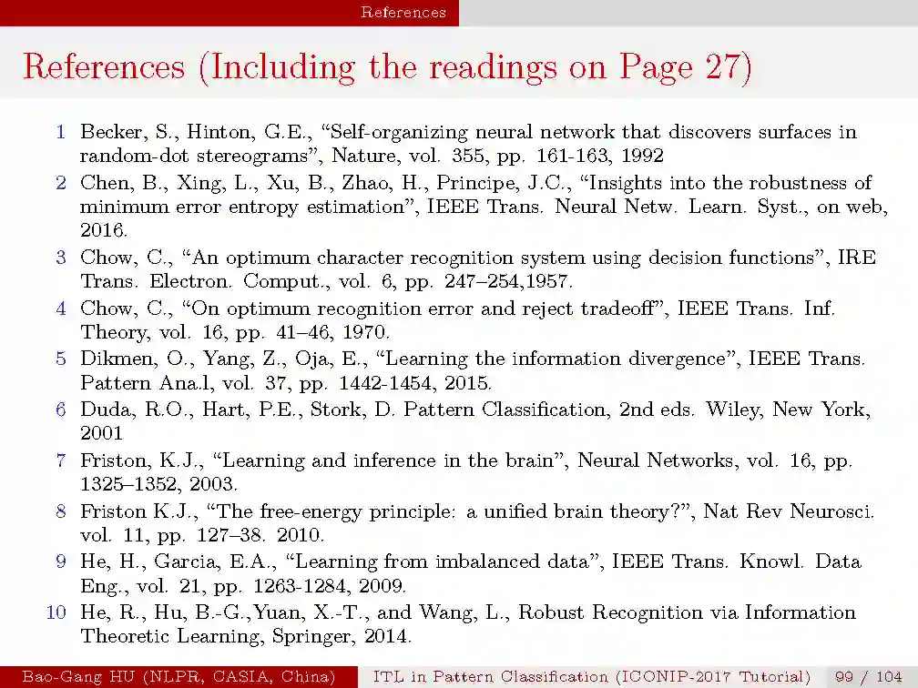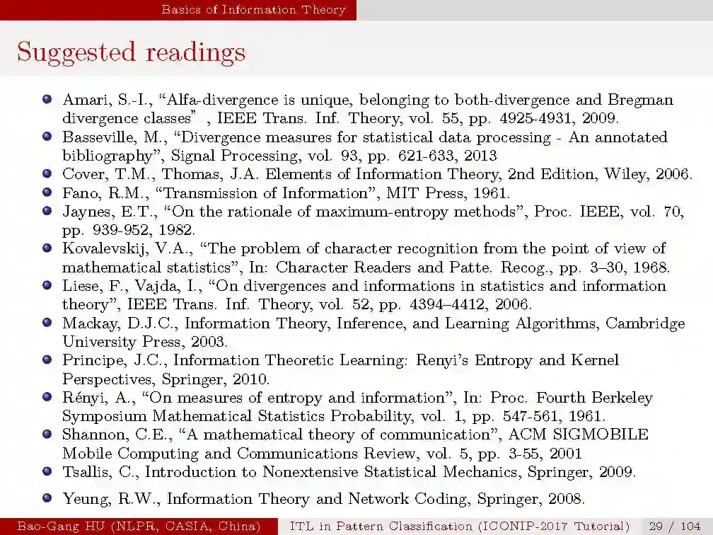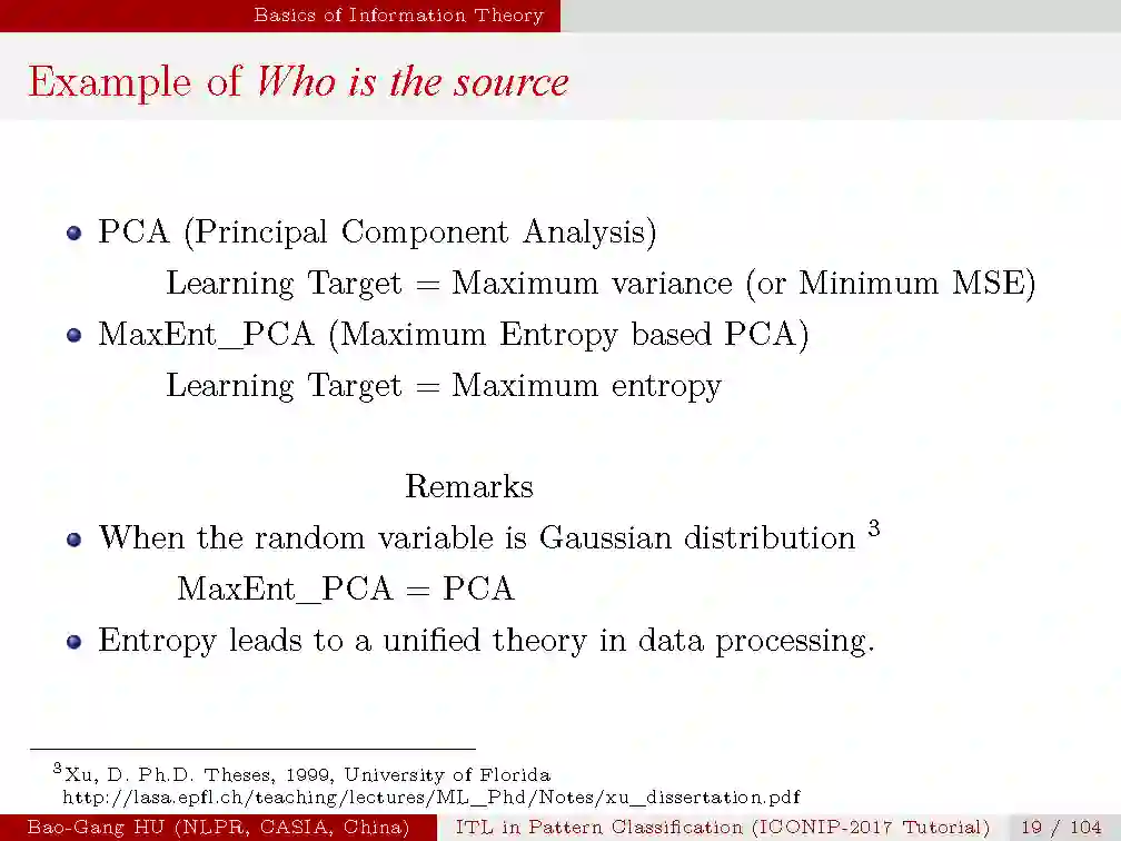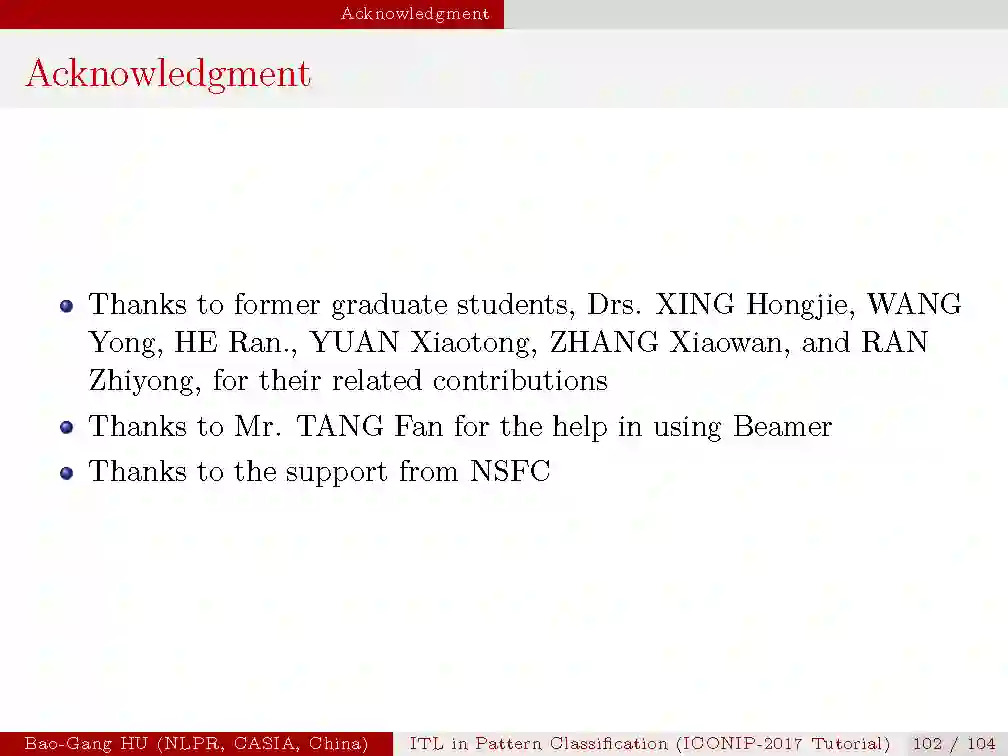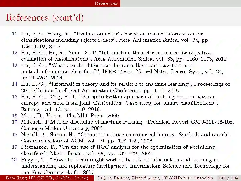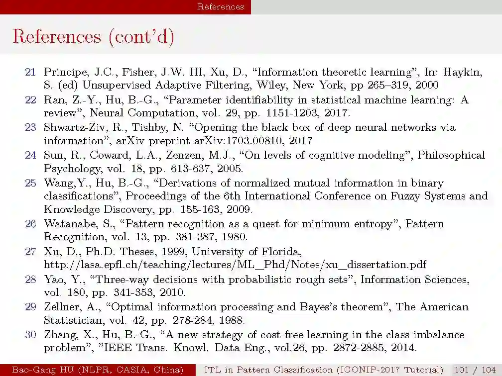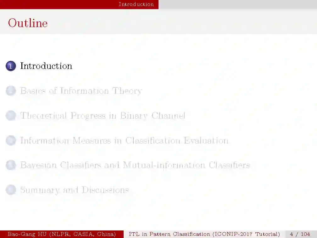 本次tutorial的目的是,1.介绍信息学习理论与模式识别的基本概念与原理;2.揭示最新的理论研究进展;3.从机器学习与人工智能的研究中启发思索。由于时间有限,本次只是大概介绍一下本次tutorial的内容,后续会详细介绍每一部分。