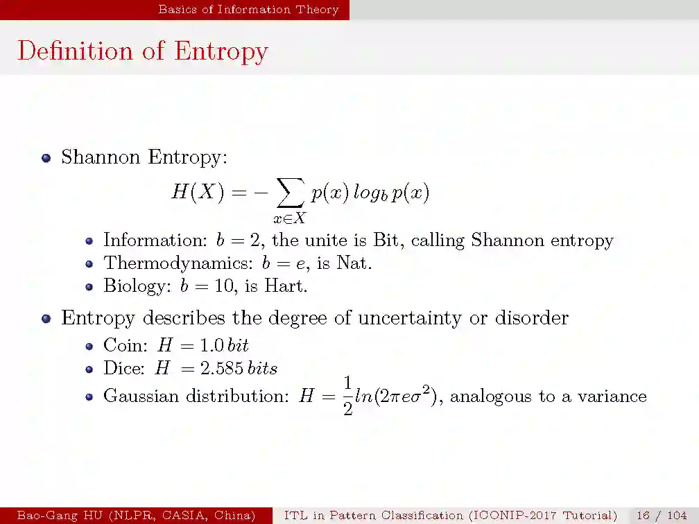 【导读】今天,专知很荣幸邀请到中科院自动化研究所胡包钢研究员分享他最近在国际神经信息处理会议ICONIP上做的教学报告。在这篇报告中,作者相信信息学习理论将会成为未来机器学习理论发展中更为重要的基础内容。在今年Yann LeCun教授访问中国科学院自动化所之际,作者将自己的一篇观点文章分享与他作为学术交流。深度学习近年来在各个领域取得了巨大的成功,然而深度神经网络的可解释性及其理论一直是一个问题。利用信息论来解释神经网络的文章也逐渐引起关注,比如《Deep Learning and the information Bottleneck Principle》《Opening the Black Box of Deep Neural Networks via Information》,深度学习先驱Geoffery Hinton也曾评价该文章”信息瓶颈极其有趣…或许是解开谜题的那把钥匙”。在本次报告中,作者从自己的理解介绍了信息学习理论与机器学习的区别与联系,希望能够给读者带来启发。文章末尾附有胡老师的信息理论学习的教程报告pdf下载。