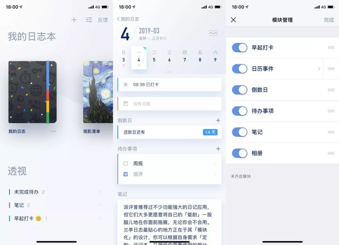 派评曾推荐过不少功能强大的日记应用,但它们大多更愿意将自己的「能耐」一股脑儿地在你面前施展,无论你会不会用。兰亭日志最贴心的地方正在于其「模块化」的设计,你可以根据自身需求「定制」日志,只展现你需要使用的部分,而将那些不需要的功能全都藏起来,在满足功能需求的同时,又可以保持简洁直观。