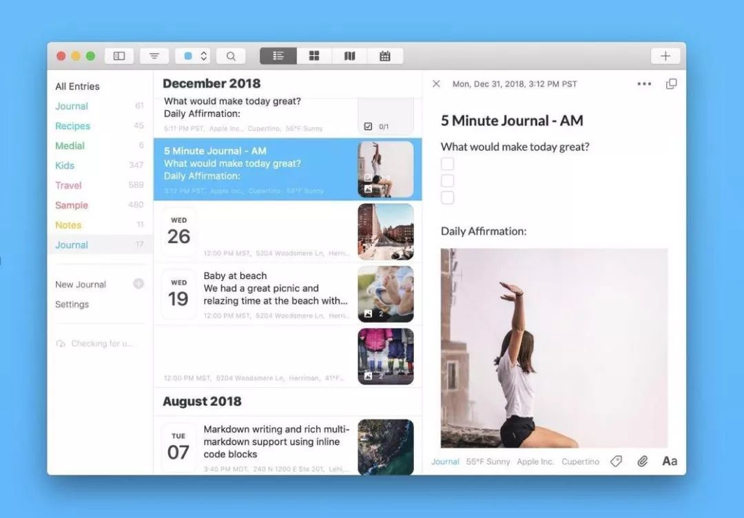 老牌日记应用 Day One 在近期带来了 macOS 平台的 3.0 大版本升级,最明显的变化应该就是更加现代化的设计和经过全新打造的工具栏了。Day One 的新版工具栏提供了过滤、快速跳转、搜索等常用的操作按钮,我们也可以在工具栏中找到切换列表、媒体、地图和日历视图的选项。可以说,新版的 Day One for Mac 在整体设计和交互上更加像是一款 macOS 风格的应用,这也让 Day One 的易用性进一步提高。