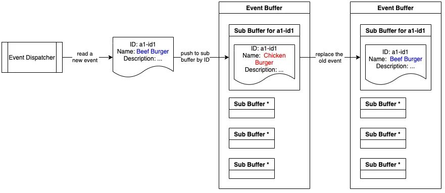 事件缓冲区由许多子缓冲区组成,每个子缓冲区具有一个唯一的 ID,该 ID 是缓冲区中事件的主键。一个子缓冲区的最大尺寸为 1。这样,事件缓冲区就可以重复处理缓冲区中具有相同 ID 的事件。