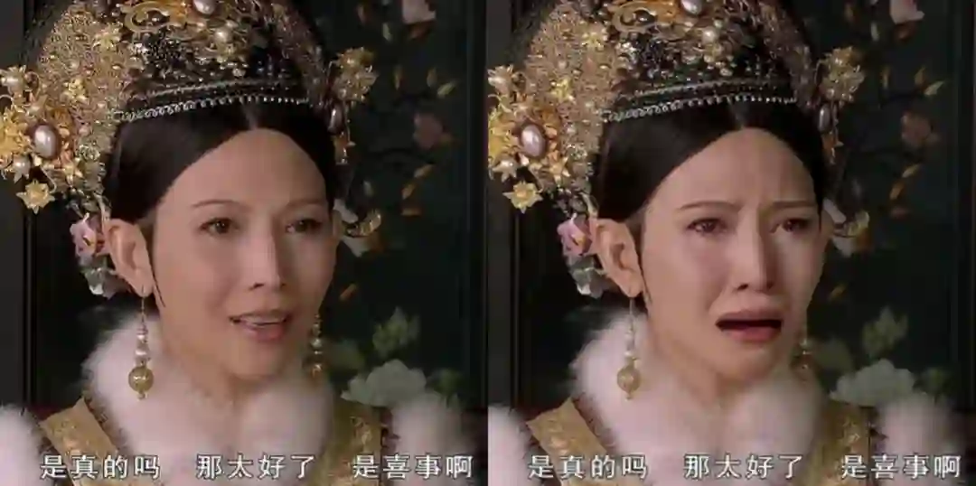 如泣如诉的哭脸特效搞怪必备,虽然和前文的笑脸特效大相径庭,但是搞笑程度却不相上下!好像一不小心就展现了皇后娘娘的心声哈哈哈。