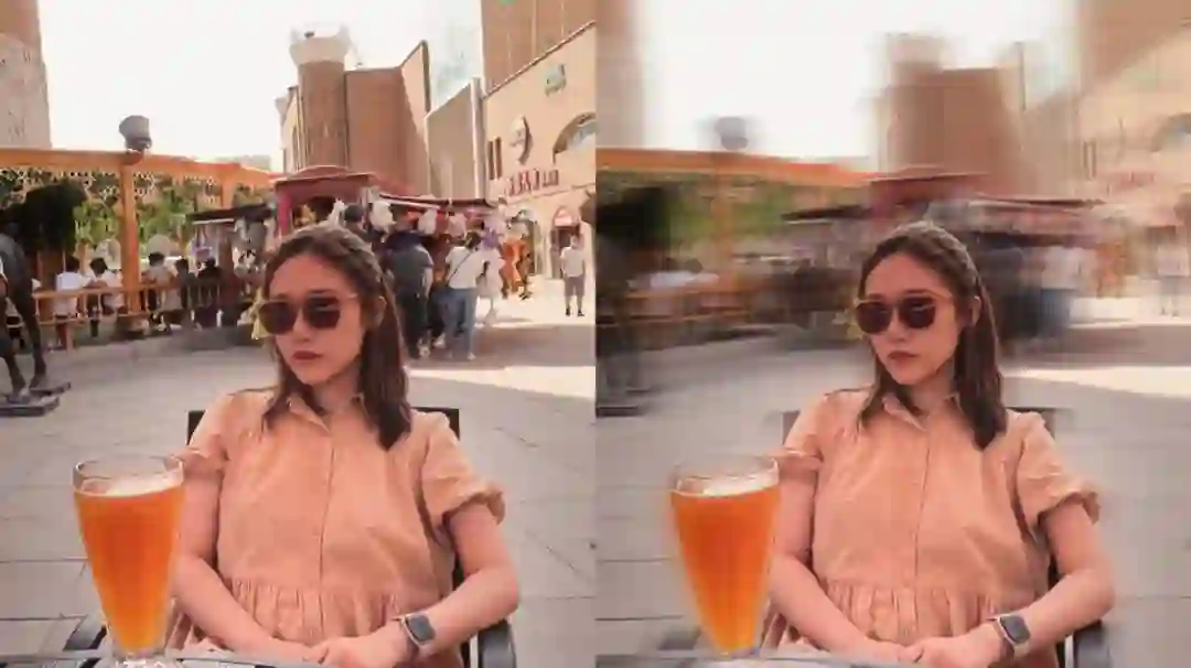 这个特效完美解决了背景杂乱的问题,模拟相机慢快门的拍摄技巧,会有一种电影中人流、车流熙熙攘攘、来来往往的故事感。