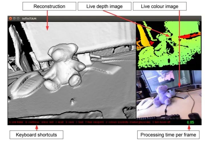 InfiniTAM提供Linux,iOS,Android平台版本,CPU可以实时重建。