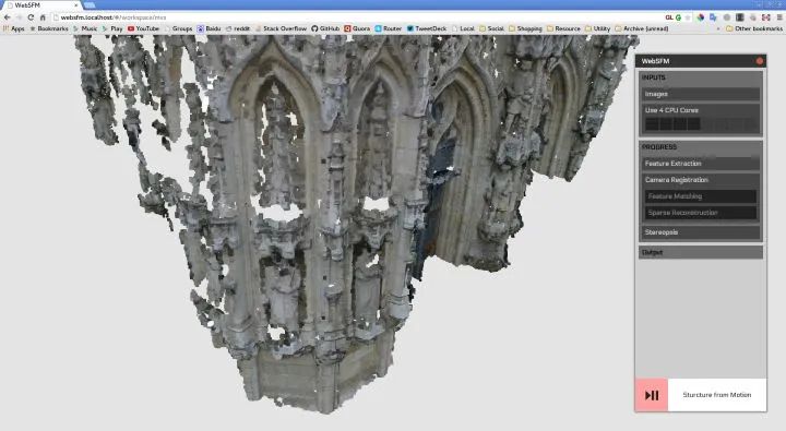 我用JavaScript撸了个WebSFM, 完全用Javascript实现的3D reconstruction系统,可以在浏览器里跑.