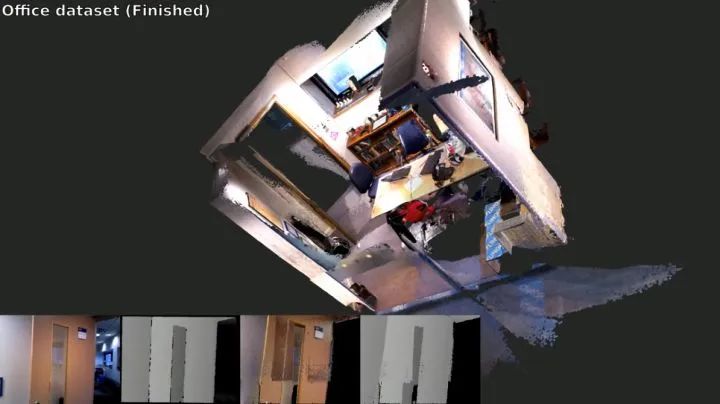 帝国理工的Newcombe等人在2011年提出的KinectFusion,可在不需要RGB图而只用深度图的情况下就能实时地建立三维模型。KinectFusion算法首次实现了基于廉价消费类相机的实时刚体重建,在当时是非常有影响力的工作,它极大的推动了实时稠密三维重建的商业化进程。