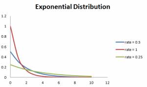 让我们再一次看看呼叫中心的那个例子。不同呼叫之间的时间间隔是多少呢?在这里,指数分布模拟了呼叫之间的时间间隔。