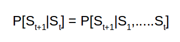 所以在给定状态 St 的情况下求未来状态 St+1 的概率和给定前面所有状态求 St+1 的概率相同。这是因为状态 St 已经将前面所有状态的信息都嵌入了其中。