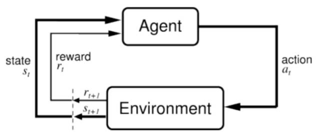 如上图所示,强化学习的思想主要:即训练实体 (Agent) 不断地采取动作 (action), 之后转到下一个状态 (State), 并且获得一个奖励 (reward), 从而进一步更新训练实体。