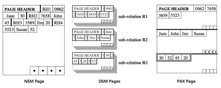 顺便一提,2001 年 Ailamaki 等人提出 PAX (Partition Attributes Cross) 格式,尝试将 DSM 的一些优点引入 NSM,将两者的优点相结合。