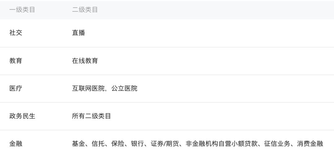 开放小程序直播的行业类目