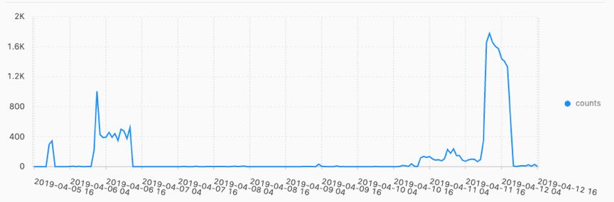 2019年4月4日,阿里云安全应急响应中心监测到Confluence 官方发布安全更新指出,Widget Connector 存在服务端模板注入漏洞,攻击者能利用此漏洞实现目录穿越遍历甚至远程命令执行。4月10日远程命令执行PoC被公开,阿里云监测到此漏洞被大规模利用,4月12日凌晨攻击流量达到第二次高峰。