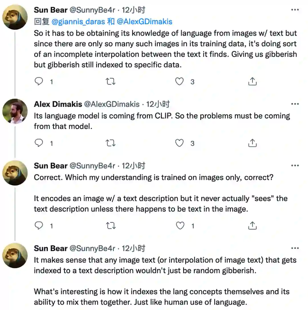 -任何被索引到文本描述的图像文本(或图像文本的插值)都不会只是随机的胡言乱语,这很有道理。有趣的是它如何对语言概念本身进行索引,以及它将它们混合在一起的能力。就像人类对语言的使用一样。