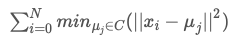 KMeans算法的原理更加简洁:“物以类聚”。我们目的是将一堆零散的数据(如上面图2)归为k个类别,使得每个类别中的每个数据样本,距离该类别的中心(质心,centroid)距离最小,数学公式为:
