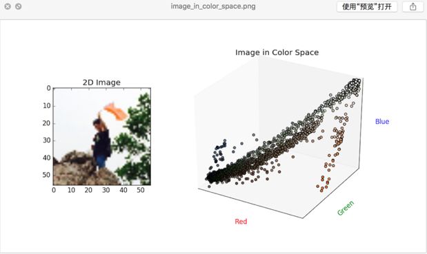 当然,一张图像不可能包含所有颜色,我们将一张彩色图像所包含的像素投射到色彩空间中,可以更直观地感受图像中颜色的分布: