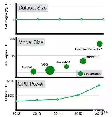 每年,我们都能看到计算性能和模型复杂度的提升,从2012年7层的AlexNet,发展到2015年101层的ResNet。