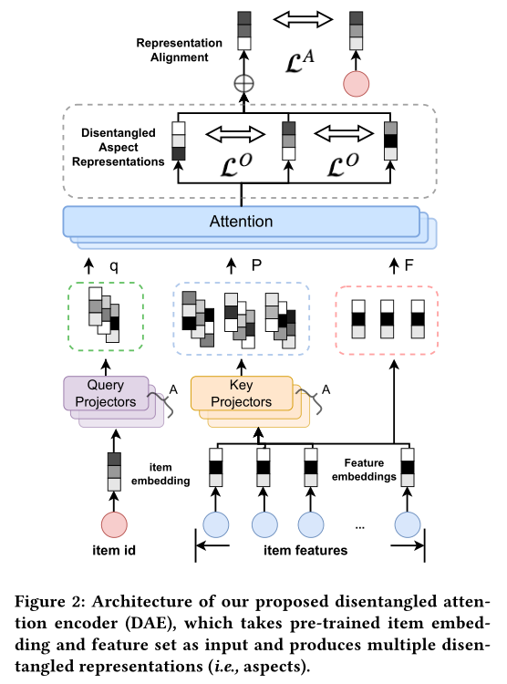 可以从不同潜在方面描述该物品的特性,基于解耦的思想,我们可以将这些特征,根据所描述物品的不同方面分解为不同的表示