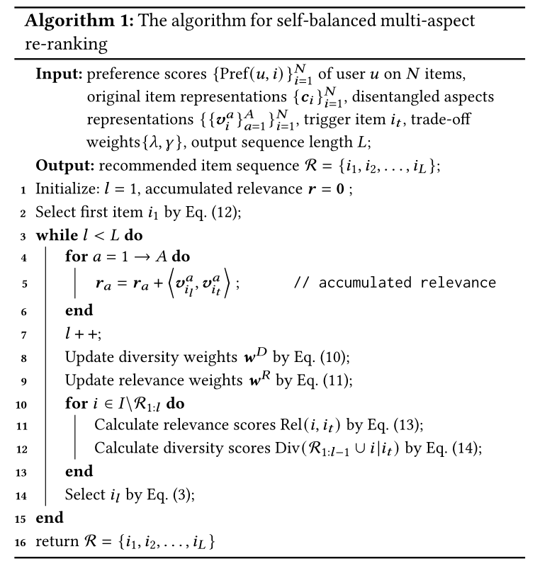 个相关物品,具体地,采用Greedy Selection的方案对推荐列表中的物品进行再排序:
