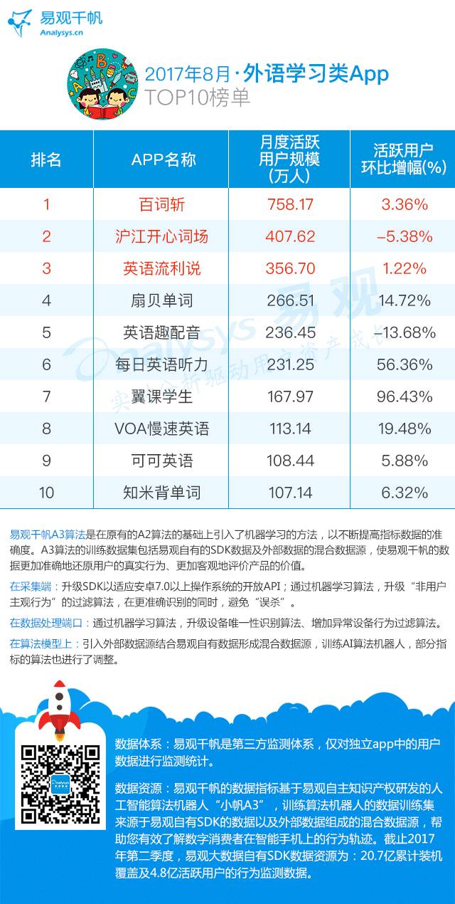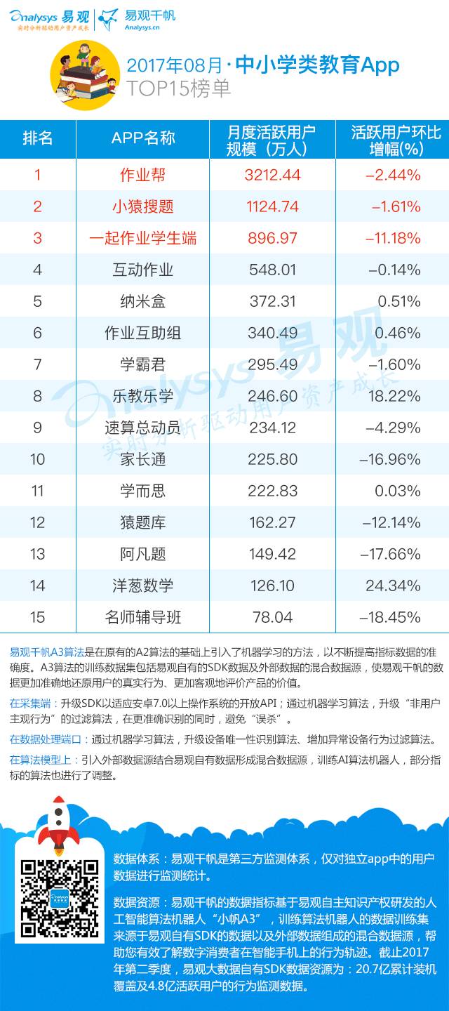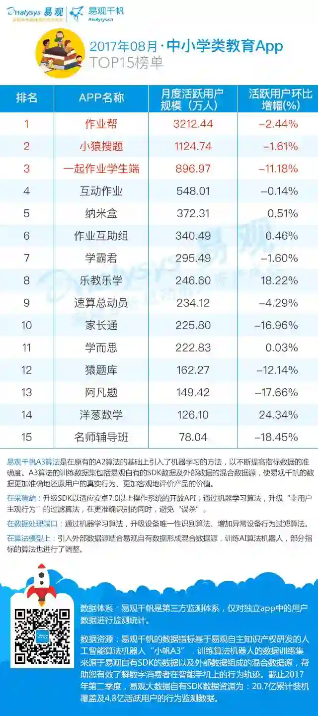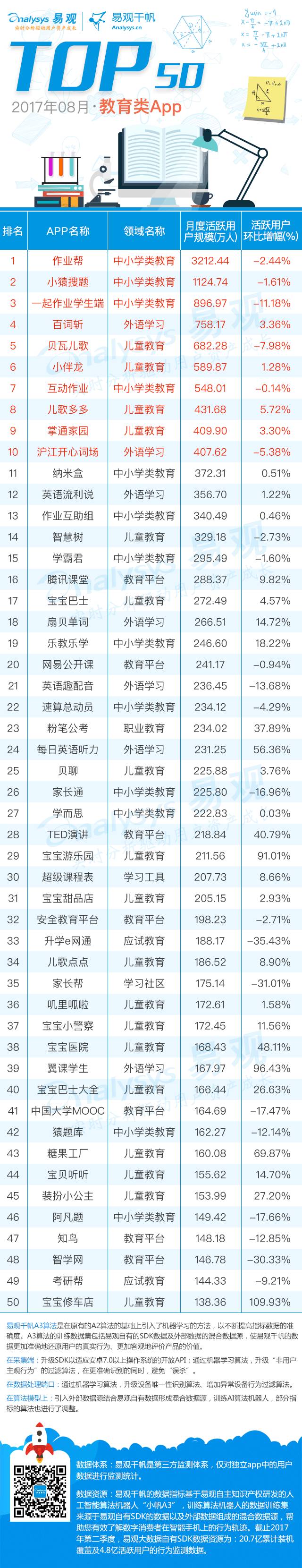 8月教育类App TOP50榜单