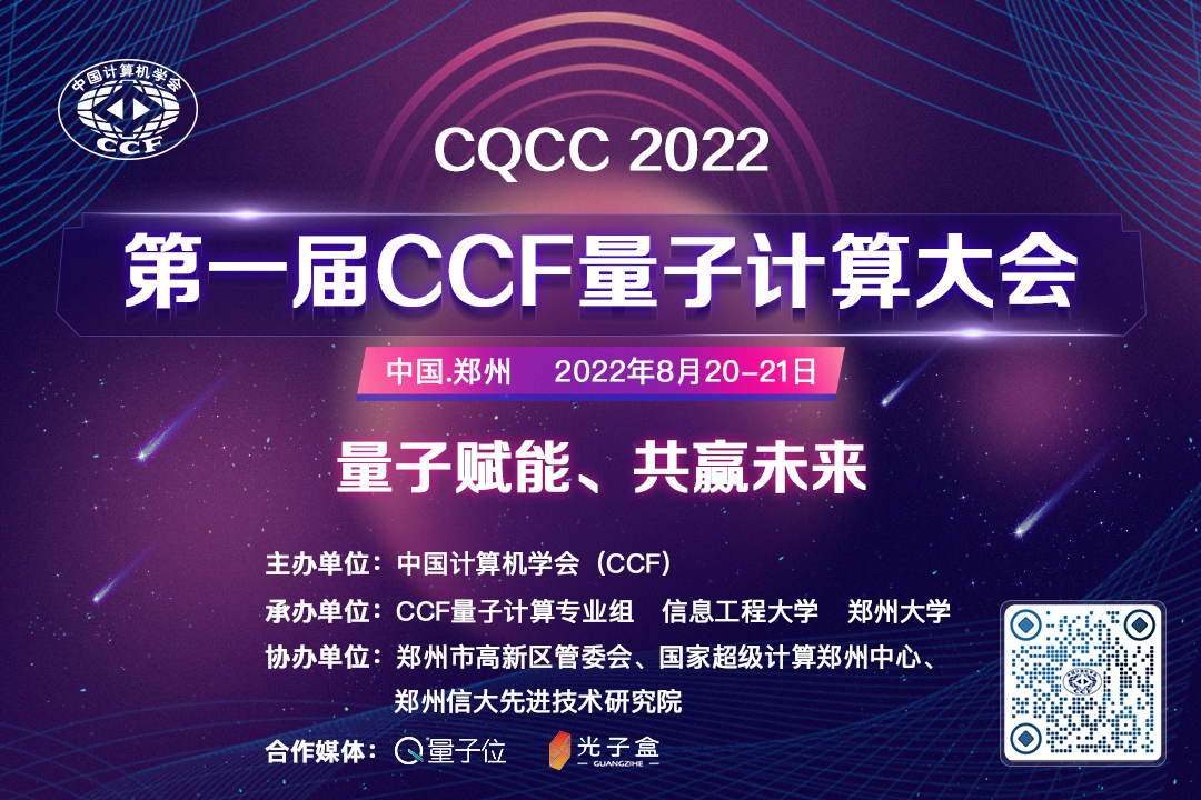 首届CCF量子计算大会(The 1st CCF Quantum Computation Conference,CQCC 2022)由CCF主办,CCF量子计算专业组、信息工程大学、郑州大学共同承办,郑州市高新区管委会、国家超级计算郑州中心、郑州信大先进技术研究院共同协办,将于2022年8月20-21日在“绿城”郑州召开。CCF量子计算专业组主任、中国科学院院士郭光灿教授担任大会主席。