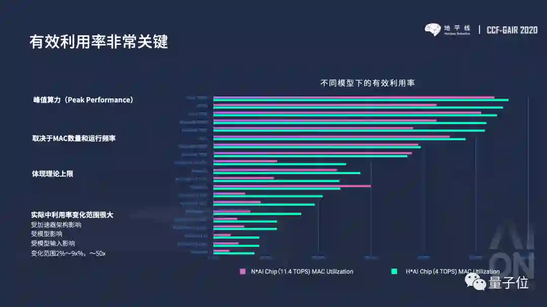 但在实际使用过程中,二者的利用率差异是非常大的。11.4TOPS算力的芯片在多数情况下,甚至还不及4TOPS算力的芯片。