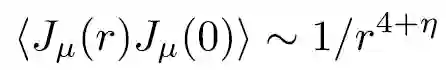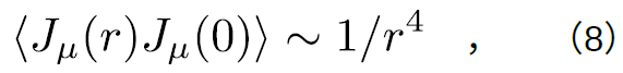 为了验证此事,如上文所述的对比临界指数、运用两个长度尺度的标度方法等等努力都已付诸实践,但是结果仍然不能让人满意。我们就是在一起反复追问这样的问题的过程中,意识到了诺特定理和它的反向应用。如果体系果然具有涌现O(4) 对称性,就应该可以找到这个对称性对应的守恒流,即。而守恒流之为守恒流,就是其关联函数在时空中按照整数幂律衰减,