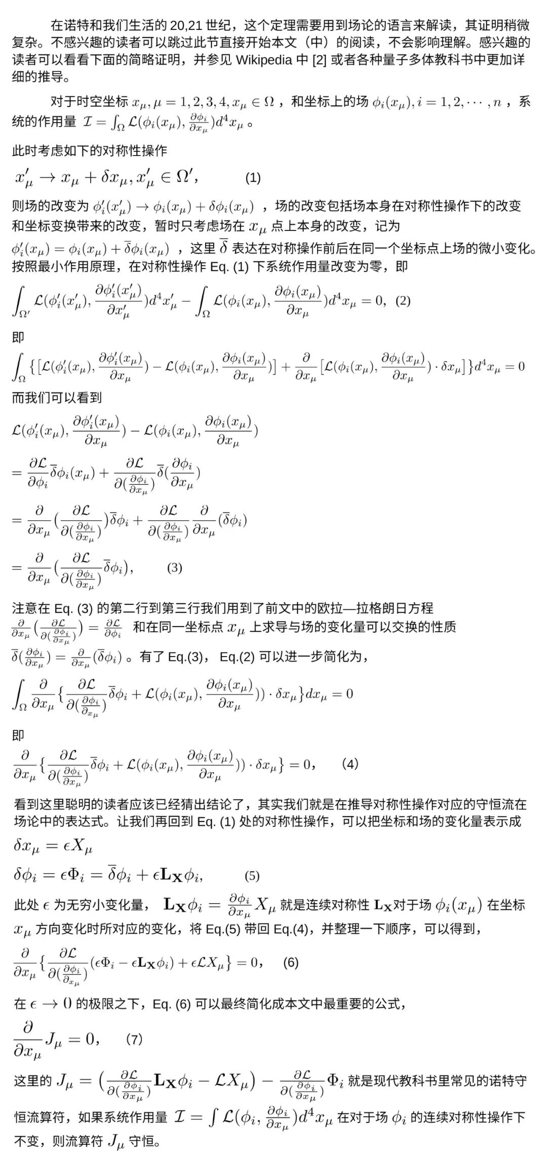 这样的性质从经典力学系统到量子力学系统,再到量子多体系统都是适用的。也许正是因为定理本身所展现出的洞彻性,让诺特本人可以忘记身处的压迫性的环境,全心地投入到追求自由的创造性工作之中,追求着追求自由的感觉。