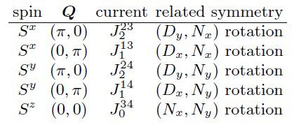 算符在 (π,π) 点上的关联函数,而 (π,0) 点上的关联函数,如果不是通过这里的分析,是看不出其明确的物理意义的。同样的,表1还告诉我们,另一个被人们忽略的关联函数,自旋算符