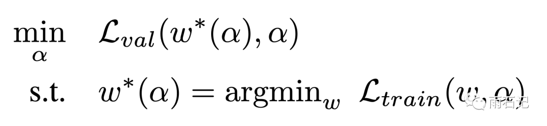 在这样的方法下,有两类参数,一类是与操作相关的参数,比如各种卷积操作等,一类是与边选择相关的参数,即计算边的概率的alpha,因而,我们的问题就变成了: