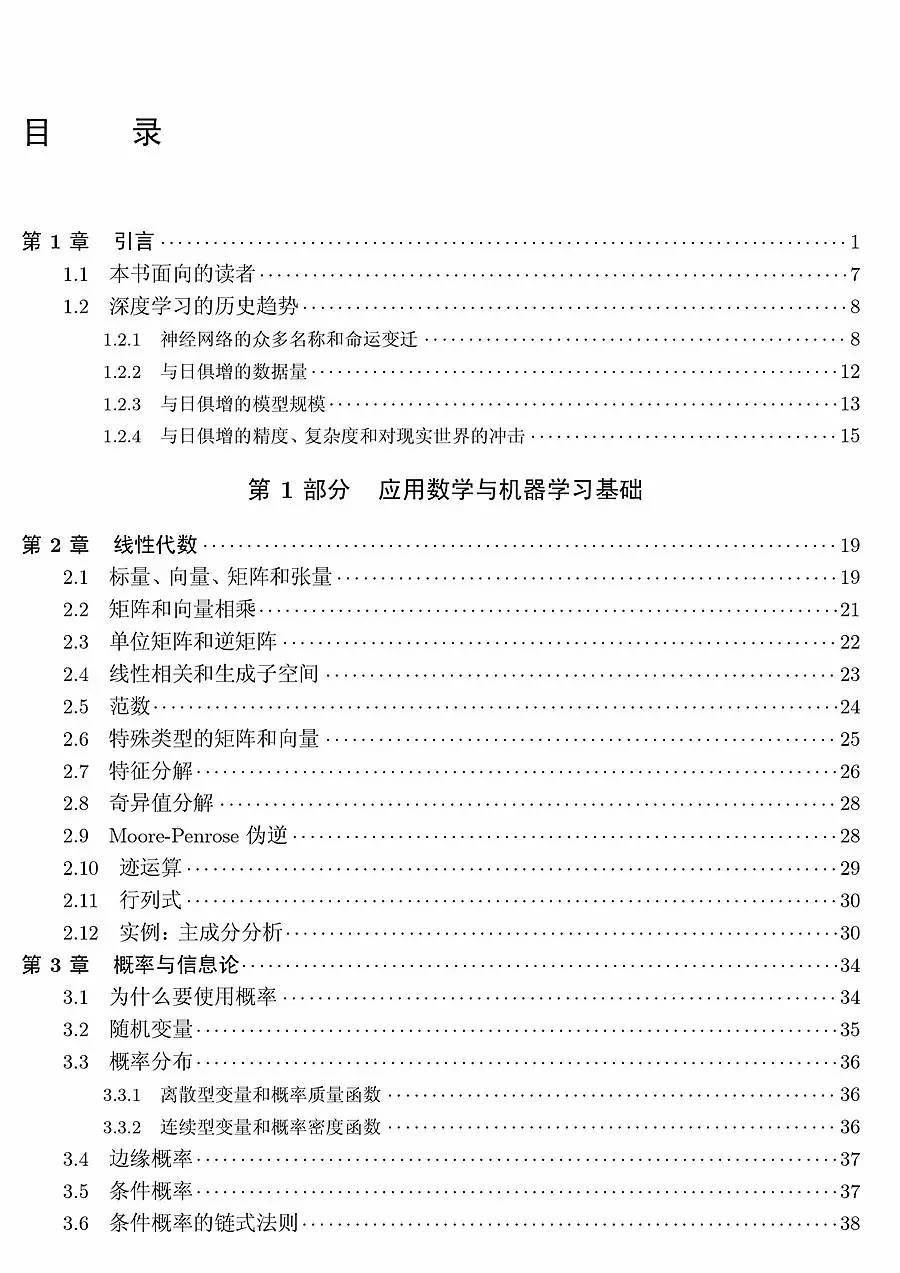 为了更好地服务各类读者,我们将本书组织为 3 个部分。第 1 部分介绍基本的数学工具和机器学习的概念。第 2 部分介绍最成熟的深度学习算法,这些技术基本上已经得到解决。第 3 部分讨论某些具有展望性的想法,它们被广泛地认为是深度学习未来的研究重点。