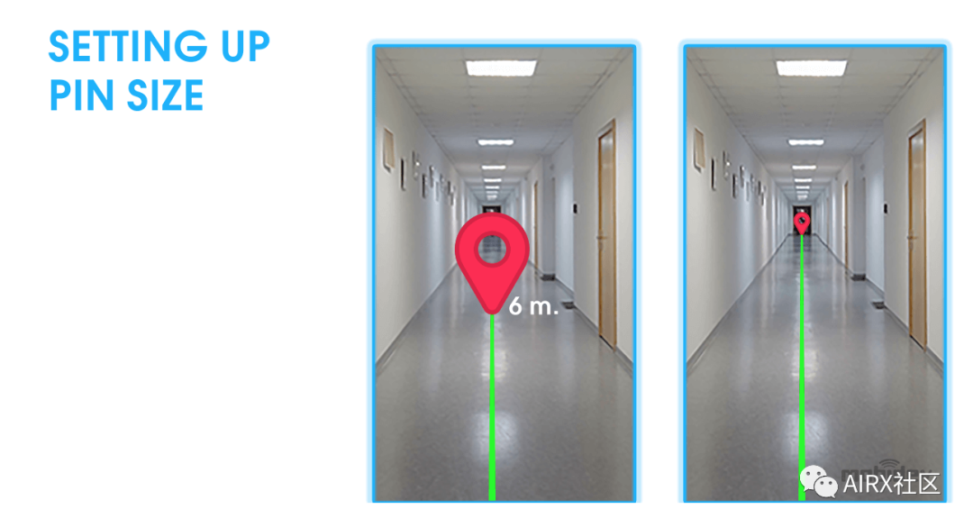下一个需要解决的挑战是如何绘制相同大小的最终目标引脚,而不管其距离如何,以使其易于阅读标签和处理触摸。由于视角的原因,物体离相机越远,它们看起来越小。因此,必须将far针变大,但它们在屏幕上看起来都一样。