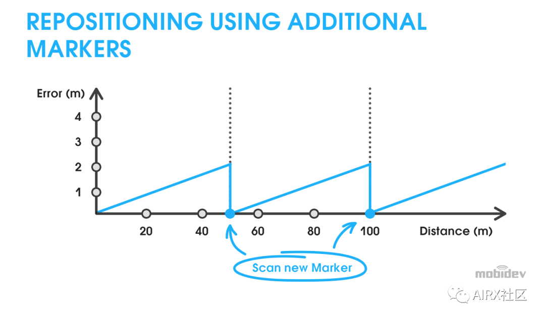 室内定位精度水平如何?客户通常想知道他们的应用程序的精确度是多少。我们发现,离起点越远,结果就越不准确。为了解决这个问题,新的视觉标记必须平均每50米放置一次。