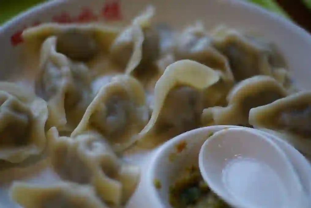 几乎有些过分厚实的饺子,咬到馅的第一口只感觉到了咸味而没有肉的香味,只有咬到玉米的时候才大体想起了这只饺子玉米猪肉馅的身份。