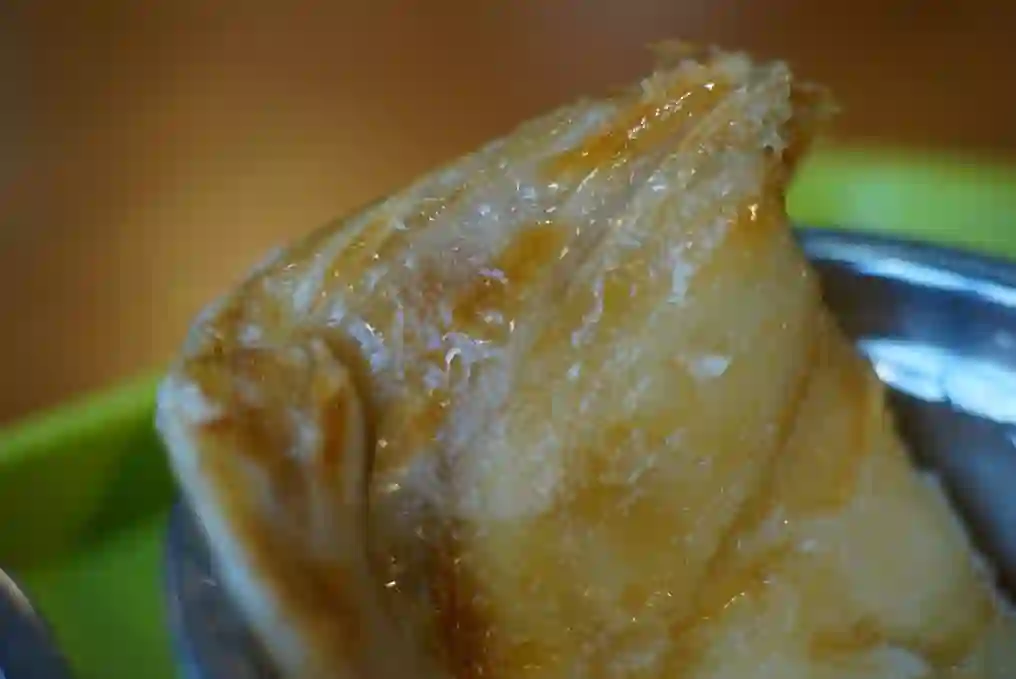 排队的时候这个手抓饼真的中奖率超高,在从众心理的驱使下我也点了一份,略略油腻的外表掩不住它饱满的内心,手抓饼酥脆的面皮与柔软的煎蛋,一口咬下有充盈口腔的满足感,若是能再配上两片清爽的生菜,想必便是完美的一餐。