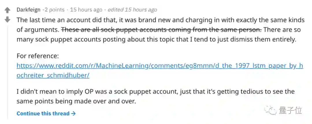 他觉得上次来Reddit宣传Schmidhuber观点就是小号,这类文章实在太多了,一遍遍看到类似话题让人感到乏味,建议将讨论关闭。
