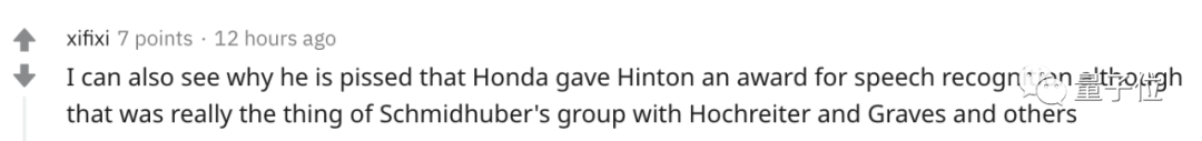 不过也有一些人对Schmidhuber表示理解,因为LSTM确实被广泛用在语音识别任务中。而本田奖的表彰词里把他的首创归功于Hinton,的确让人难以接受。