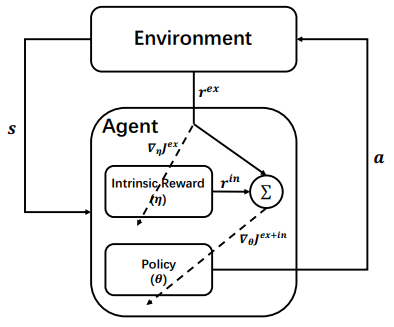 Zheng Z, Oh J, Singh S. On learning intrinsic rewards for policy gradient methods[C]//Advances in Neural Information Processing Systems. 2018: 4644-4654.